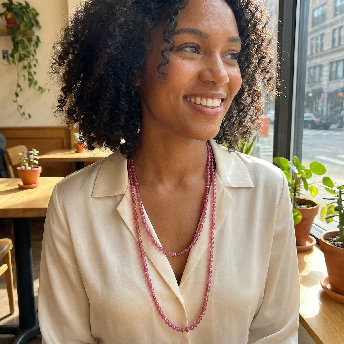 36" Hot Pink Natural Crystal & 18k Gold-Filled Stretch Necklace — Bold Sparkle, Bright Energy & Effortless Slip-On Style
