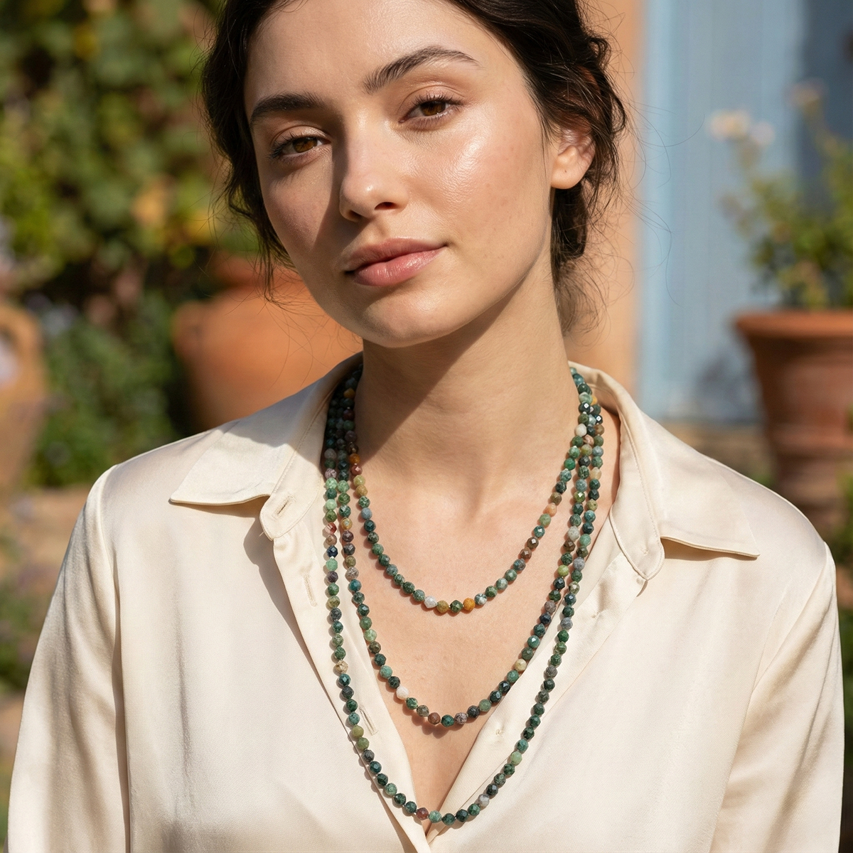 Elevate your jewelry collection with the timeless elegance of our Agate Gemstone Necklace, 48". Crafted from genuine agate beads, each stone showcases its own unique patterns and earthy colors—bringing natural character and organic beauty to every outfit. With its extra-long 48-inch length, this necklace offers endless styling possibilities: wear it long and loose, double it for a layered look, or knot it for a chic, boho-inspired finish.