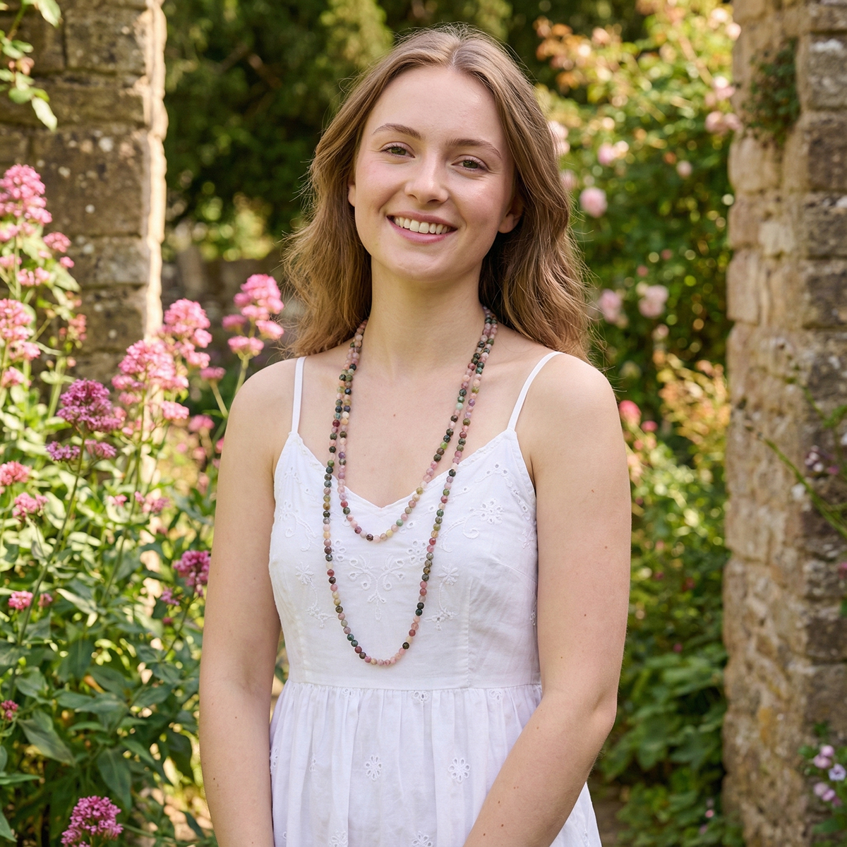 Bring a burst of color and joyful energy to your jewelry collection with our 48" Watermelon Tourmaline Necklace. Featuring genuine watermelon tourmaline beads in beautiful naturally occurring shades of pink, green, and soft transitional tones, this long gemstone strand showcases the playful, refreshing palette that makes this stone so beloved. Each bead is unique, creating a necklace full of life, personality, and stunning organic color.