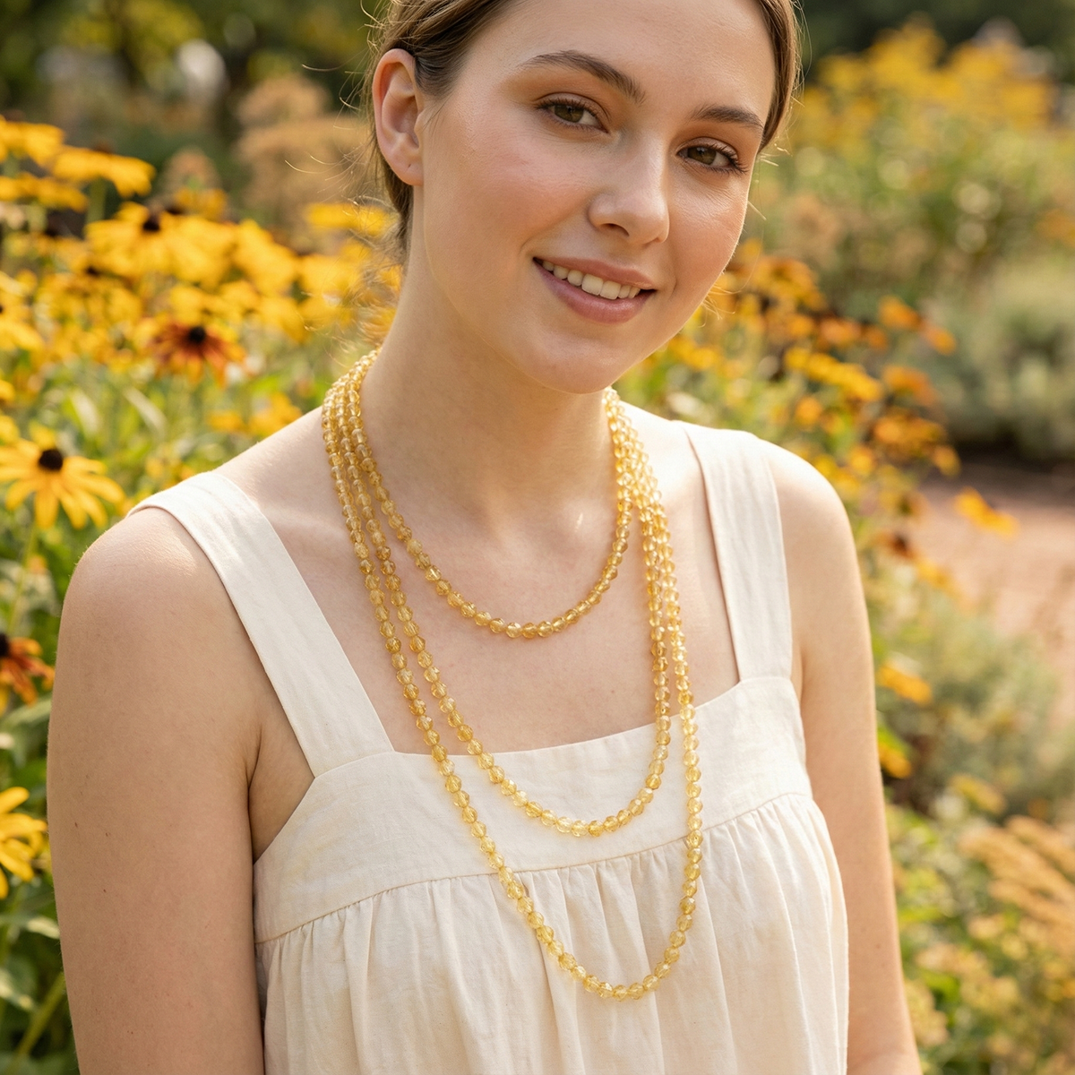 48" Yellow Topaz Gemstone Necklace — Radiant Golden Glow, Uplifting Energy & Endless Styling Options