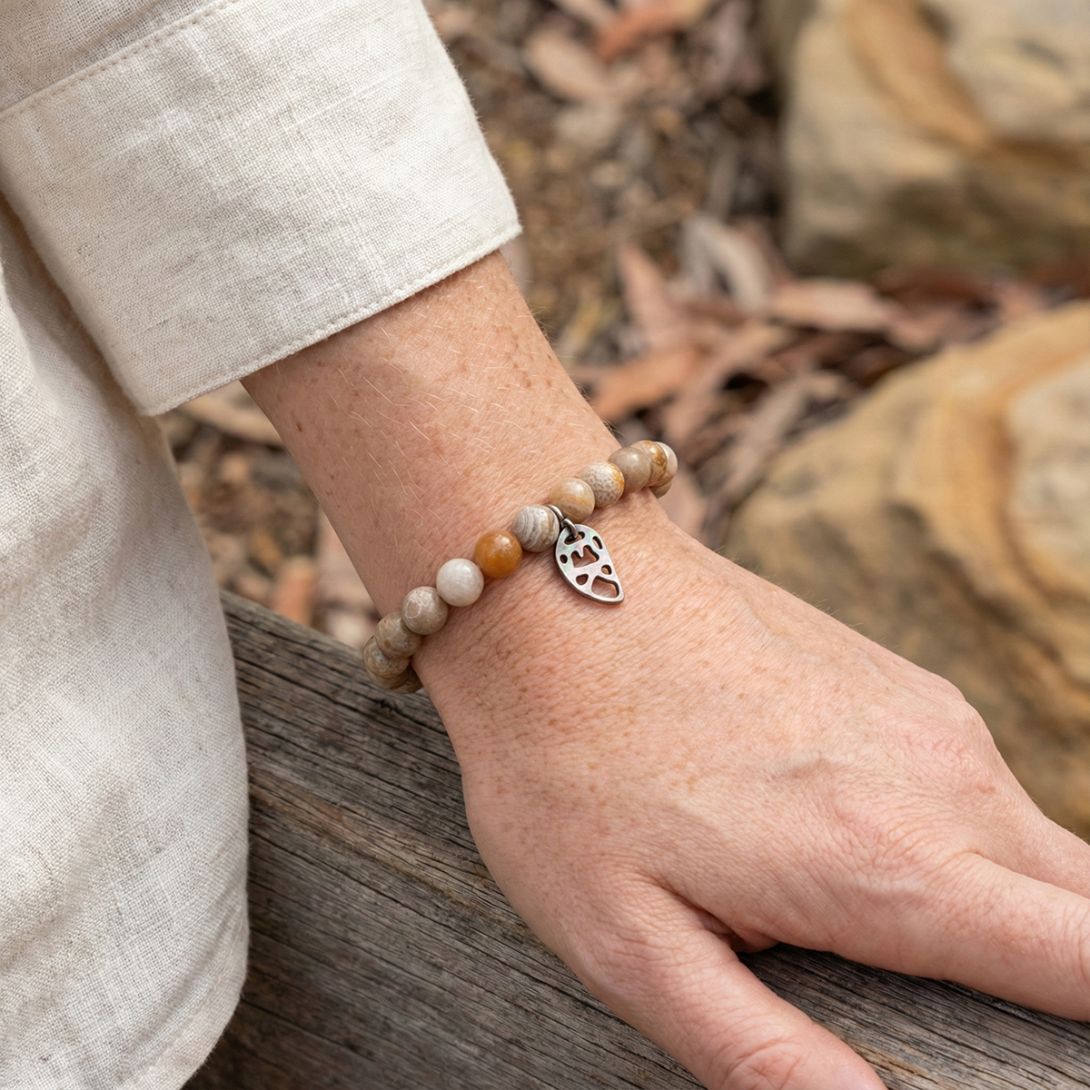 Petoskey Gemstone Bracelet (8mm Stones) — Fossil Beauty & One-of-a-Kind Natural Patterning