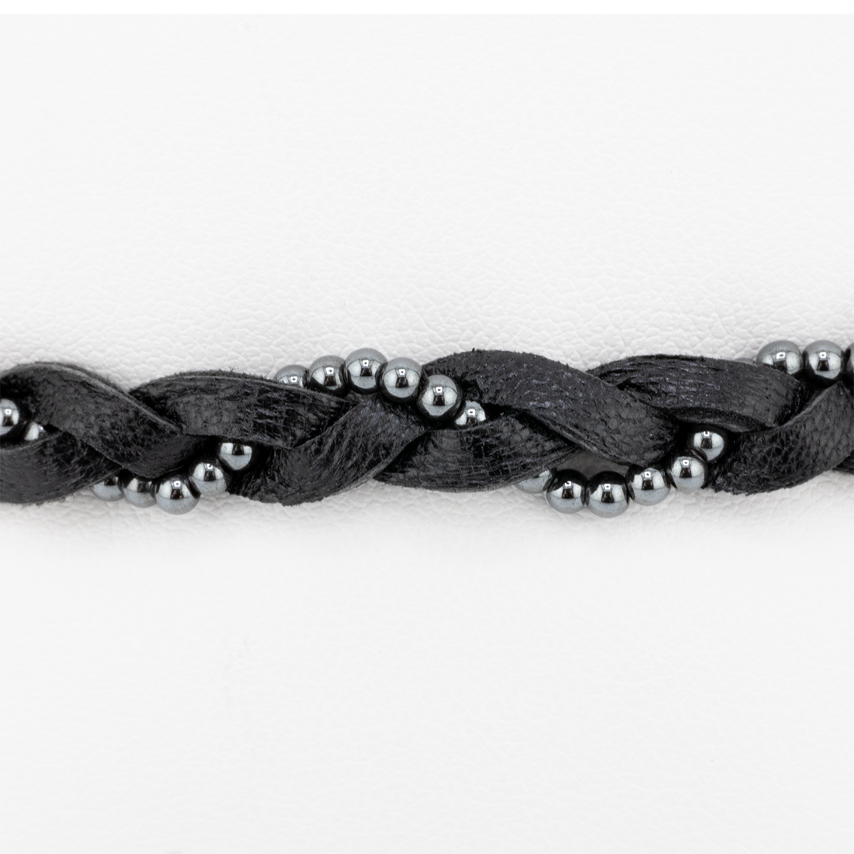 Black Italian Leather Braid & Hematite Gemstone Bracelet