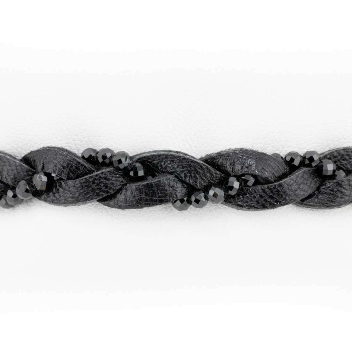Add Black Italian Leather Braid & Titanium Gemstone Bracelet to the cart