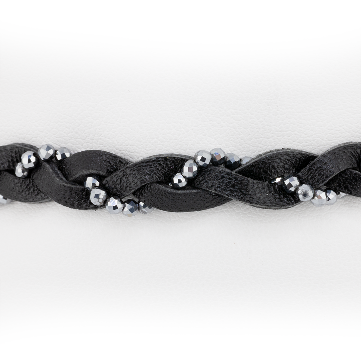 Add Black Italian Leather Braid & Hematite Gemstone Bracelet to the cart