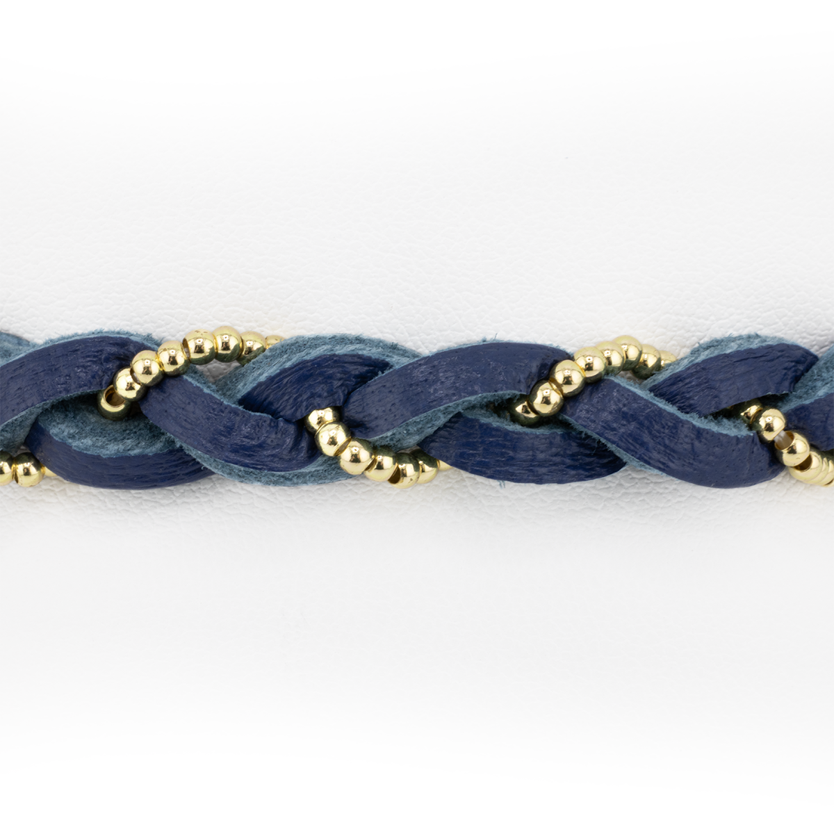 Add Navy Italian Leather Braid & Gold Bracelet to the cart