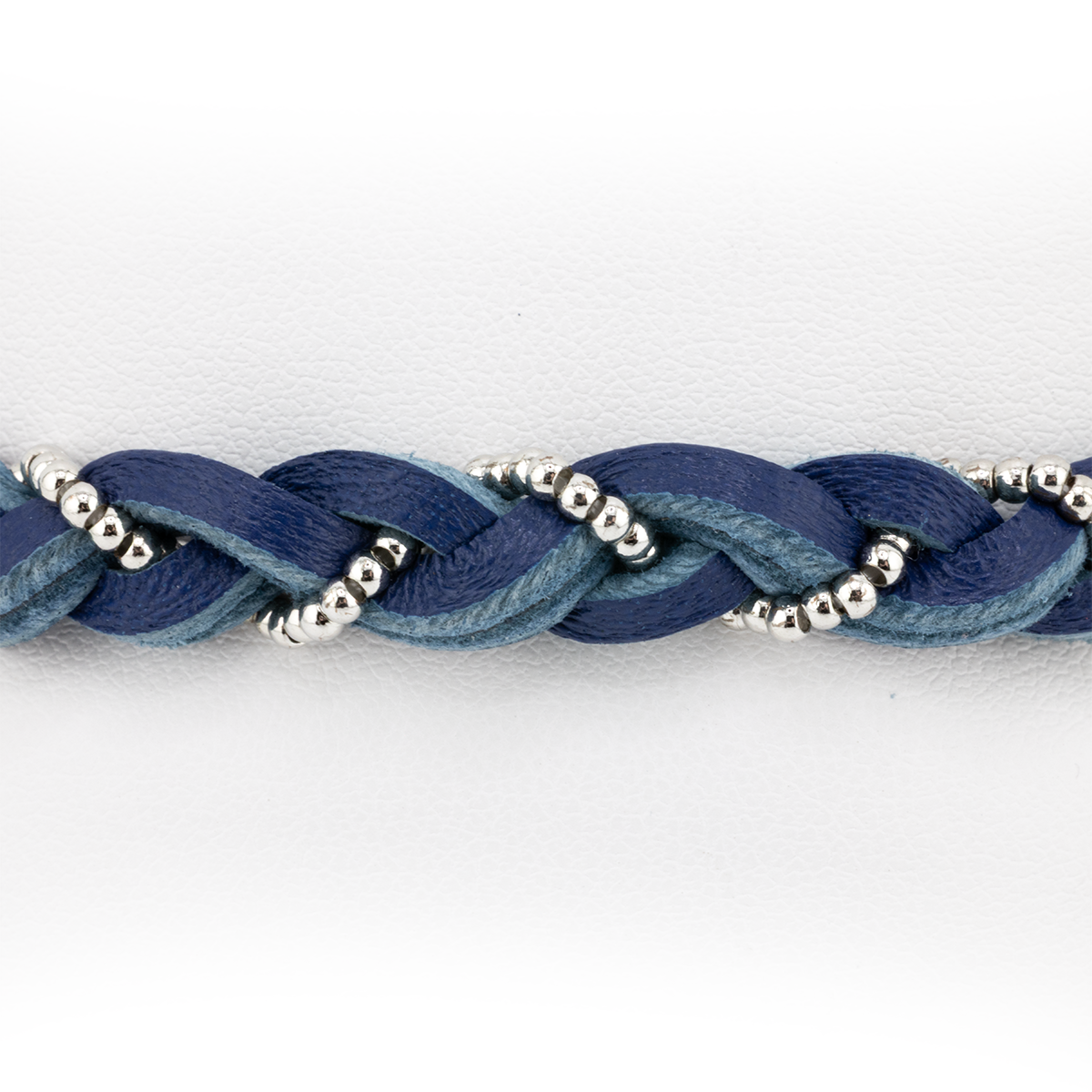 Navy Italian Leather Braid & .925 Sterling Silver Bracelet