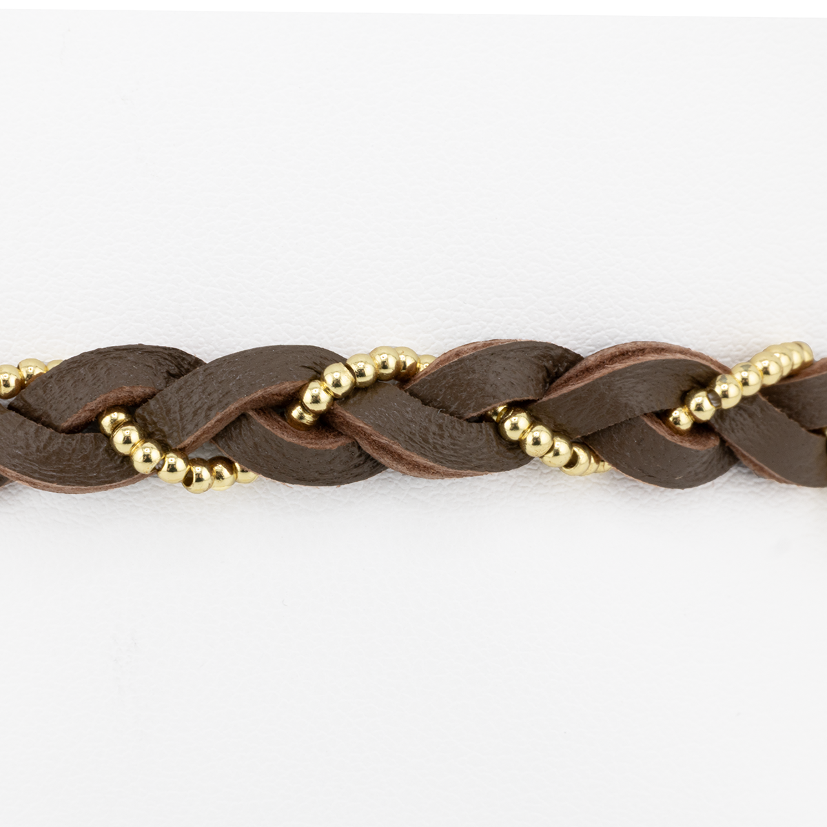 Add Chocolate Italian Leather Braid & Gold Bracelet to the cart
