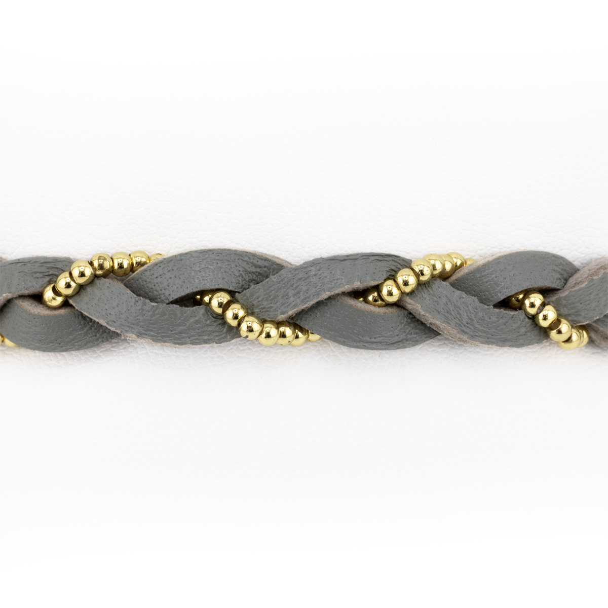 Add Gray Italian Leather Braid & Gold Bracelet to the cart