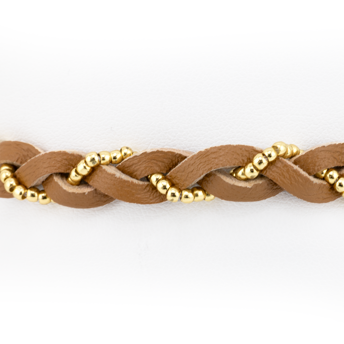 Add Cognac Italian Leather Braid & Gold Bracelet to the cart