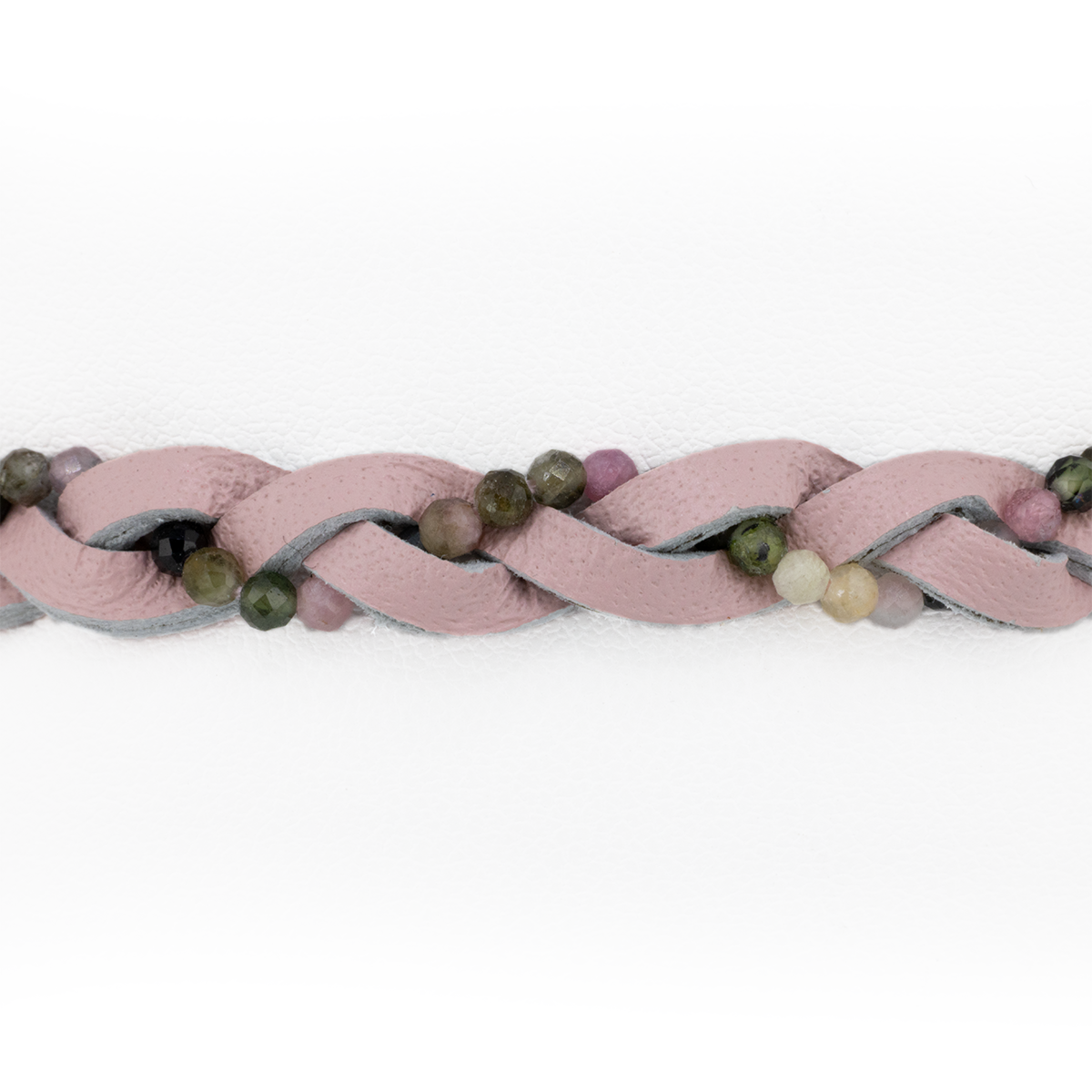 Add Blush Italian Leather Braid & Watermelon Tourmaline Gemstone Bracelet to the cart
