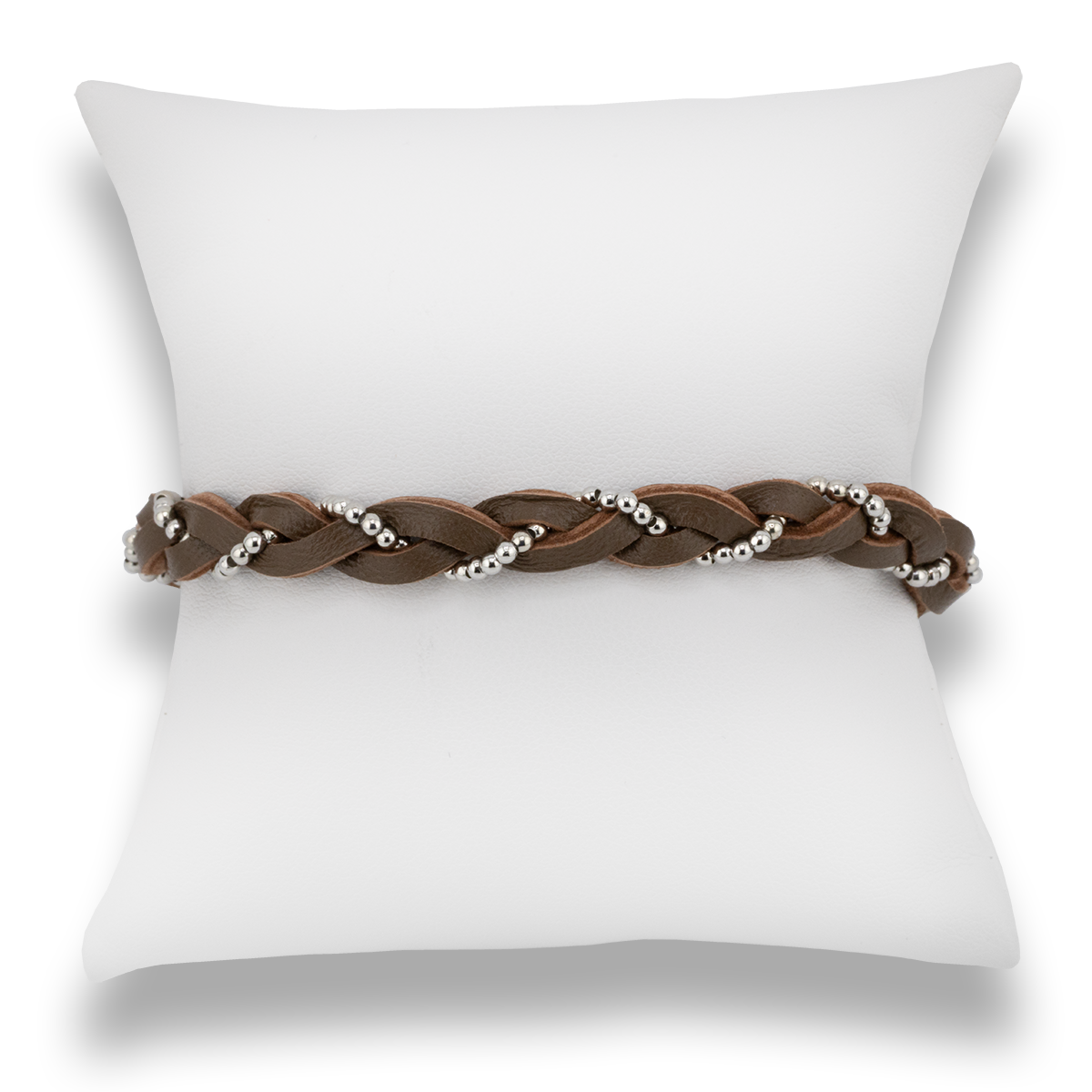 Chocolate Italian Leather Braid & .925 Sterling Silver Bracelet