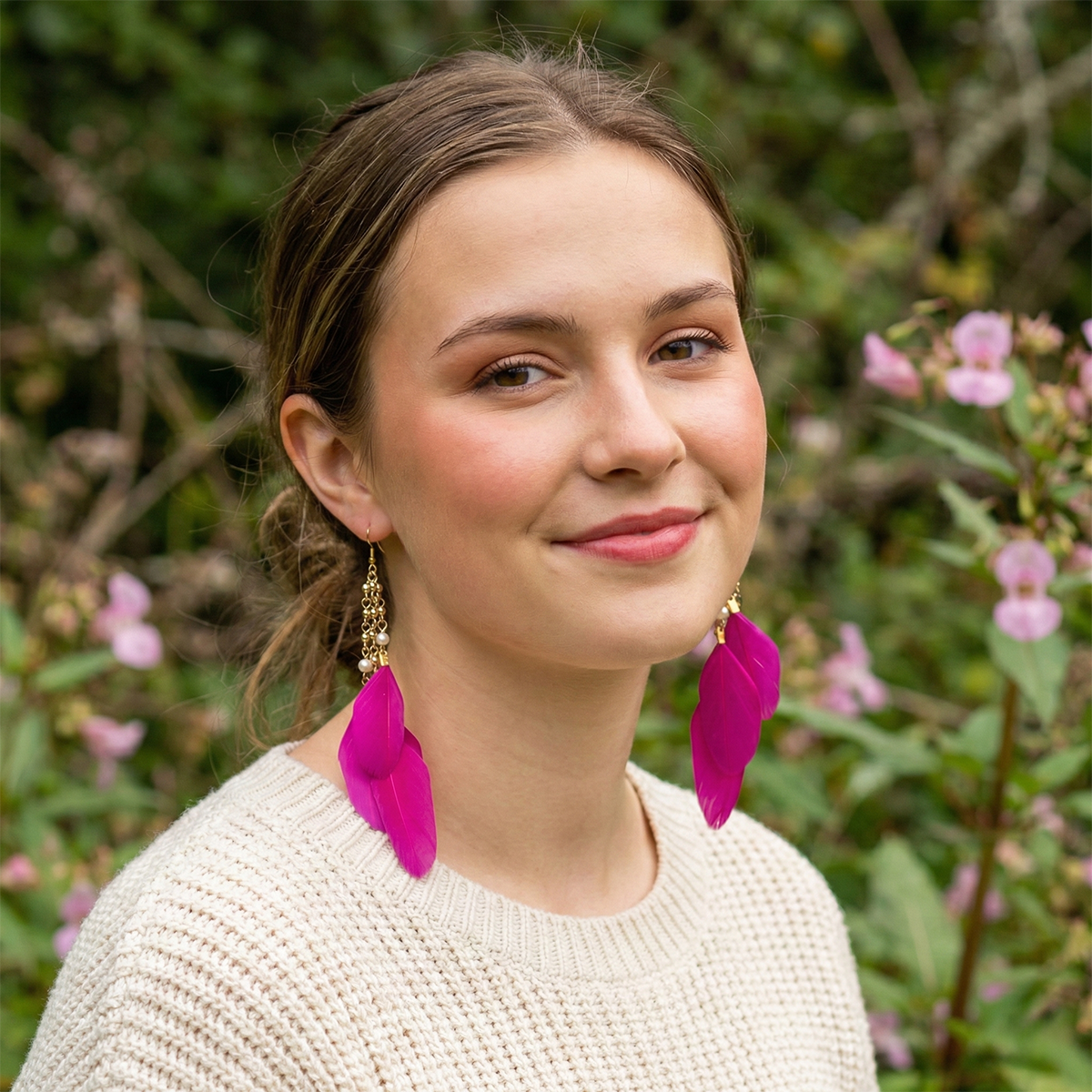 Bring bold, joyful energy to your look with our Hot Pink Feather & 18k Gold-Filled and Pearl Earring. This eye-catching design blends vivid hot pink feathers with the warm glow of 18k gold-filled accents and the timeless elegance of a genuine pearl. Lightweight, playful, and sophisticated all at once, this earring adds instant personality and movement to any outfit.