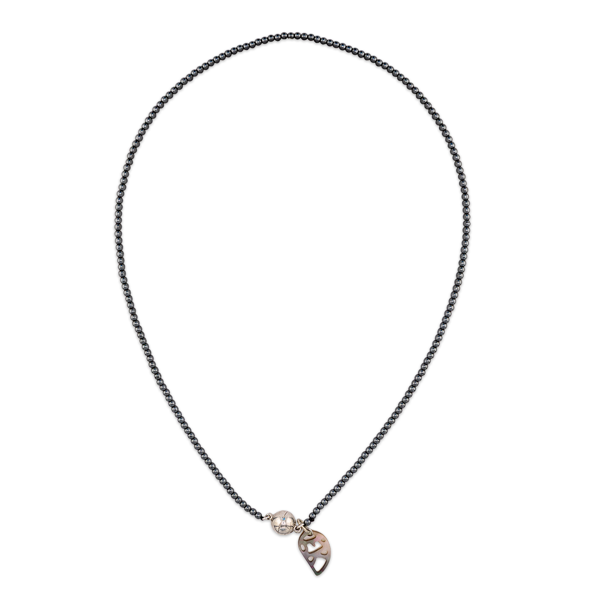 The reflective quality of the hematite adds a touch of sophistication to any outfit. You can wear this necklace alone for a subtle statement or pair it with longer chains for a textured appearance. The dark neutral tone of the gemstone makes it a versatile addition to your jewelry box as it complements a wide range of colors and fabrics. This necklace is designed to offer enduring style and modern elegance for any occasion.