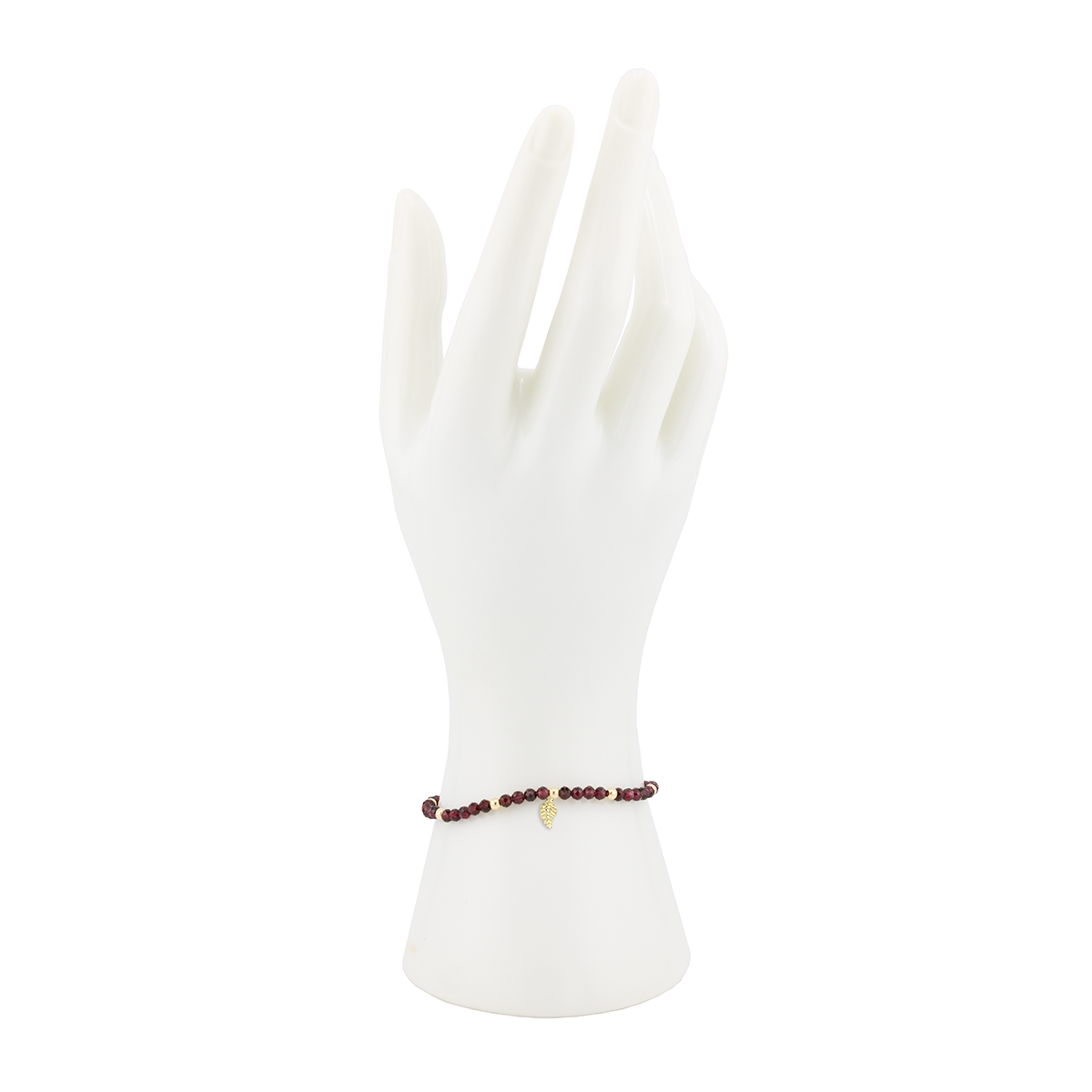 This garnet and gold-filled bracelet offers a beautiful contrast of warm red tones and golden radiance. Its refined design pairs effortlessly with casual outfits, chic office attire, or elevated eveningwear—making it a versatile and eye-catching accessory.