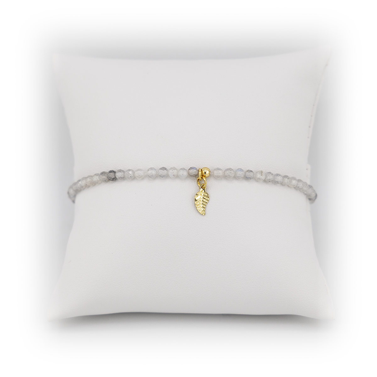 The Labradorite Gemstone Bracelet features beads with subtle, iridescent-style flashes and naturally varied tones. Its mix of grays, neutrals, and shifting highlights gives this bracelet a unique, understated look that pairs effortlessly with both casual and dressier outfits. Lightweight and easy to wear, it’s perfect for stacking or enjoying on its own.