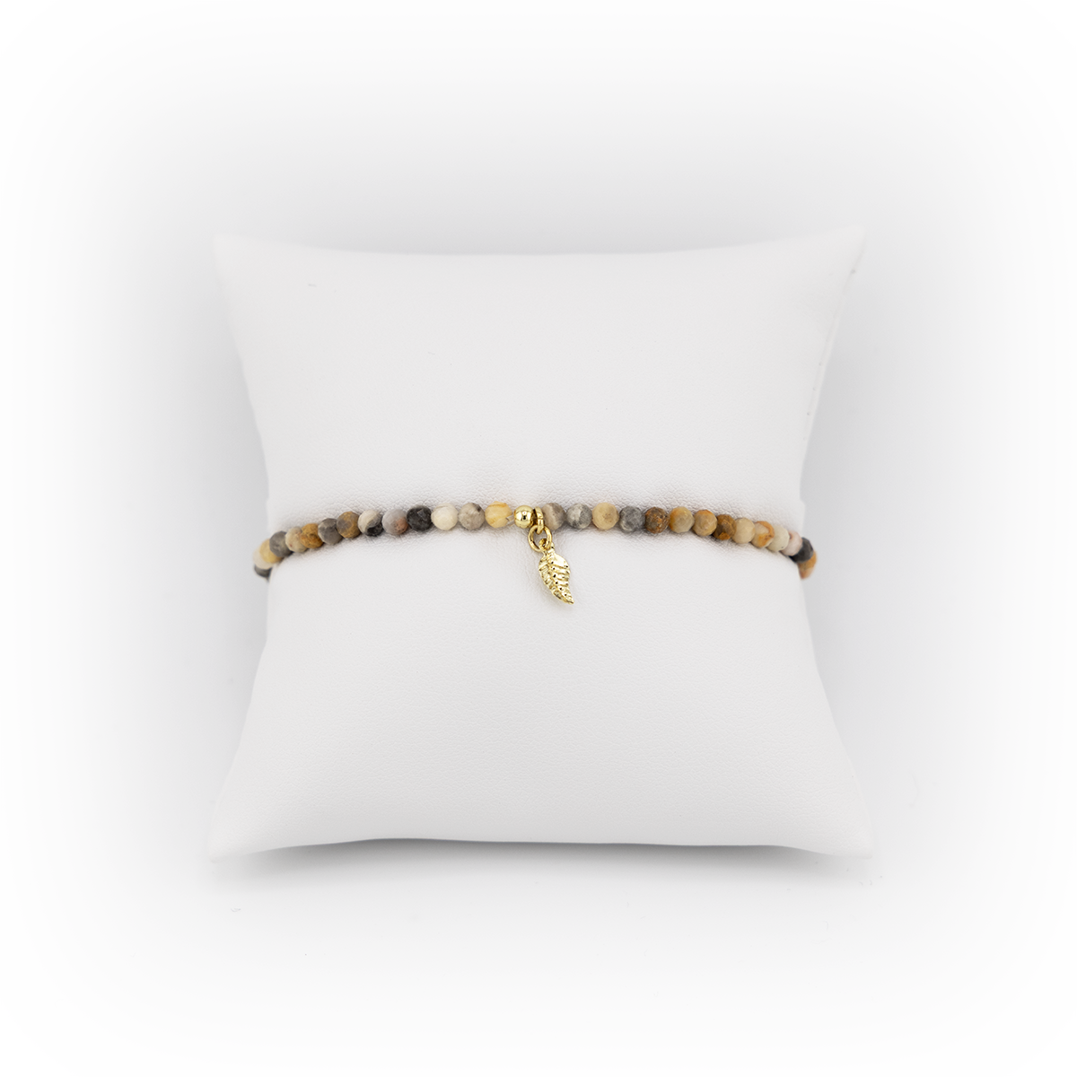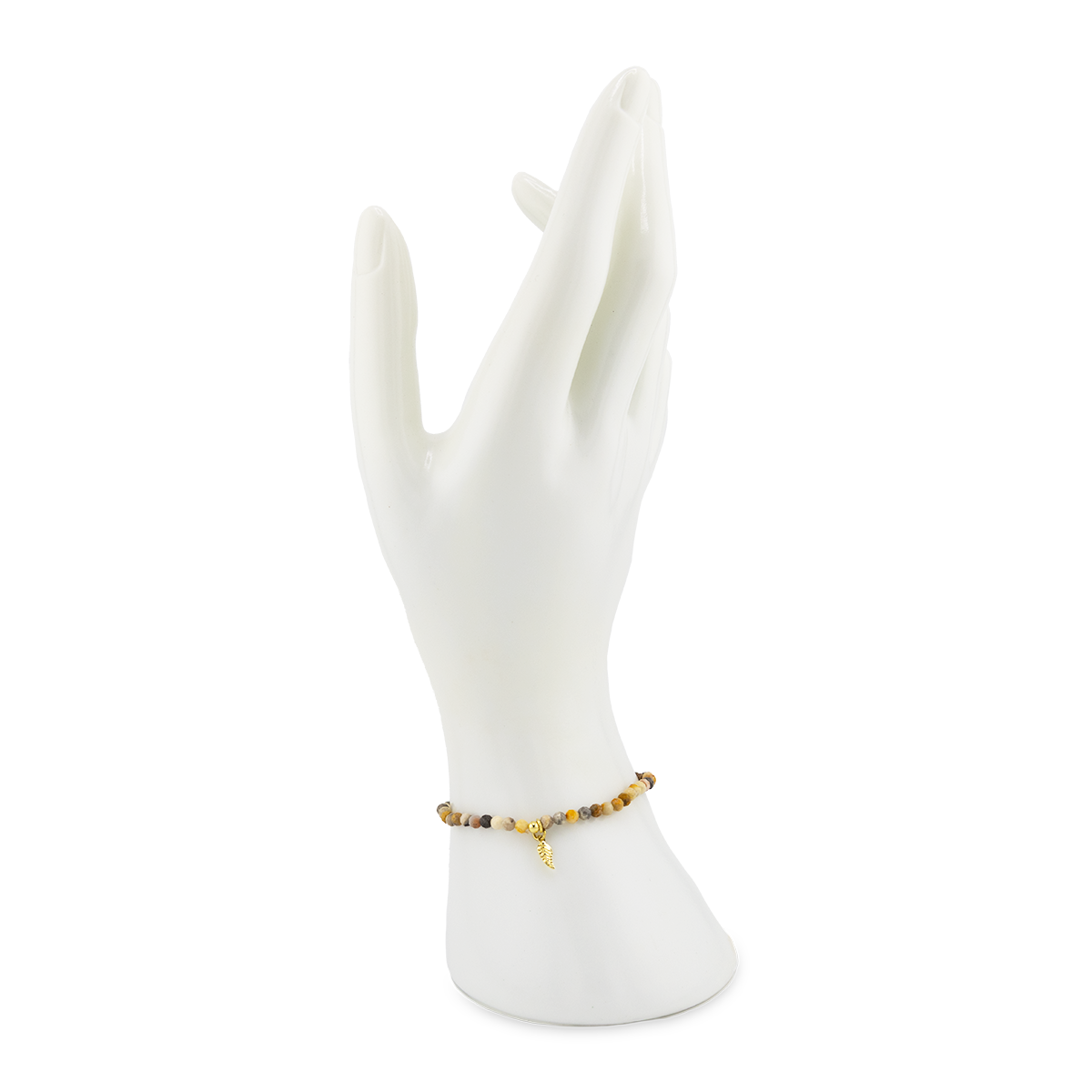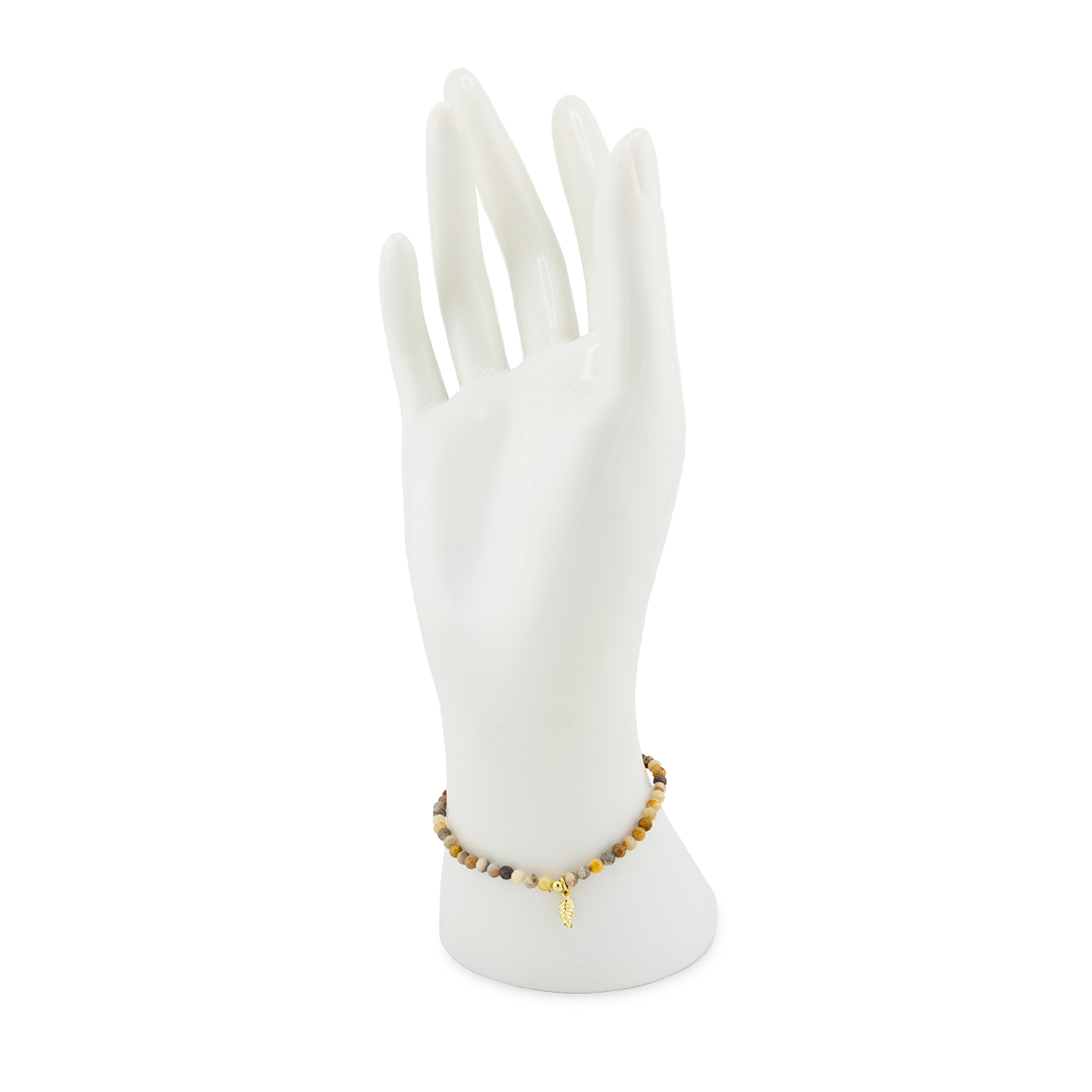 The Petoskey Gemstone Bracelet features beads with subtle, stone-like patterning inspired by the classic look of Petoskey. With its gentle neutral tones and organic appearance, this bracelet adds an easy, earthy touch to any outfit. Lightweight and comfortable, it’s perfect for wearing alone or stacking with your favorite pieces.