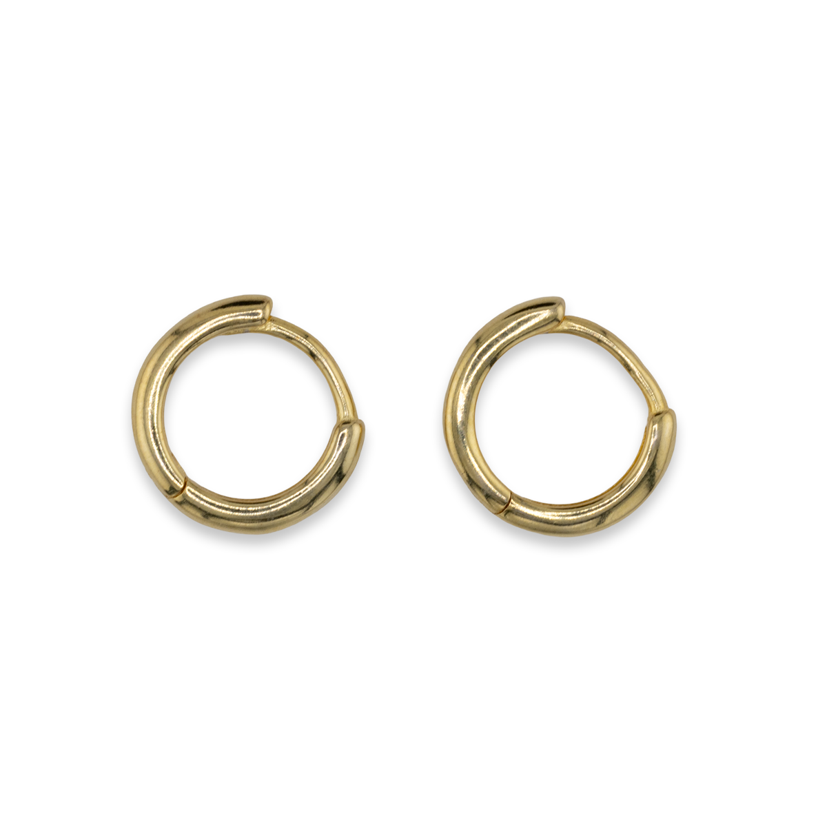 Experience the perfect blend of luxury and comfort with these Huggies crafted from .925 sterling silver and finished with 18K gold plating. These earrings are designed to sit close to the earlobe for a streamlined silhouette that is both modern and timeless. The warm gold tone adds a touch of elegance to any outfit making them a versatile choice for day or night. The secure clasp mechanism ensures they stay in place while the lightweight construction allows for all day wear without irritation. Whether worn alone for a subtle statement or stacked with other earrings for a curated look these hoops are an essential addition to your jewelry collection. The 18K gold plating provides a brilliant shine that beautifully complements the durable sterling silver core.