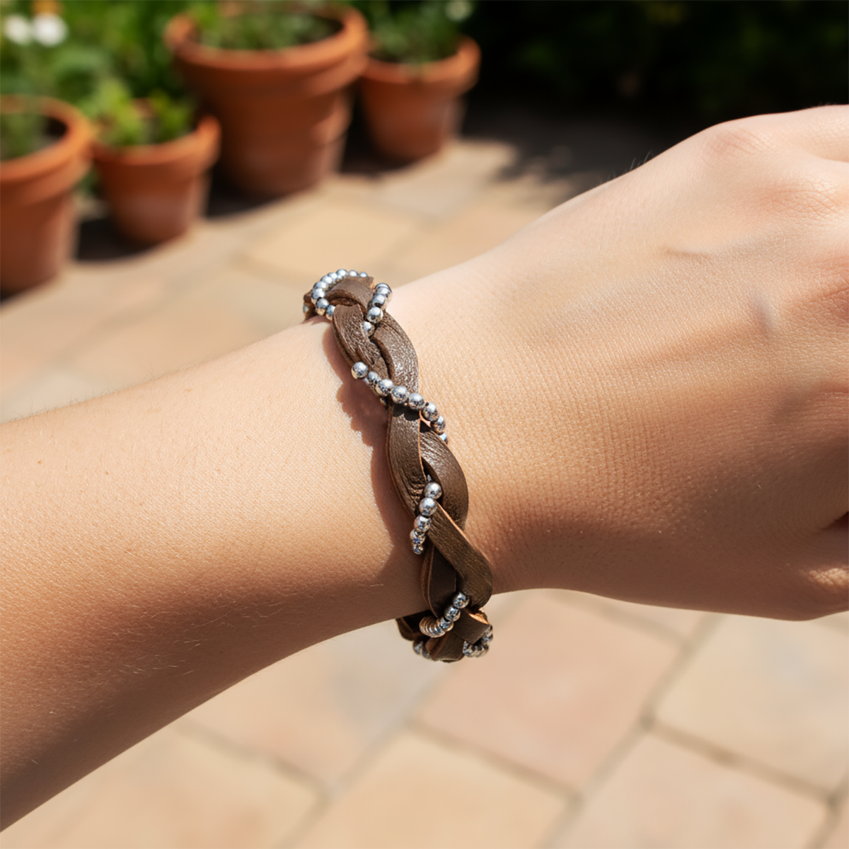 Chocolate Italian Leather Braid & .925 Sterling Silver Bracelet