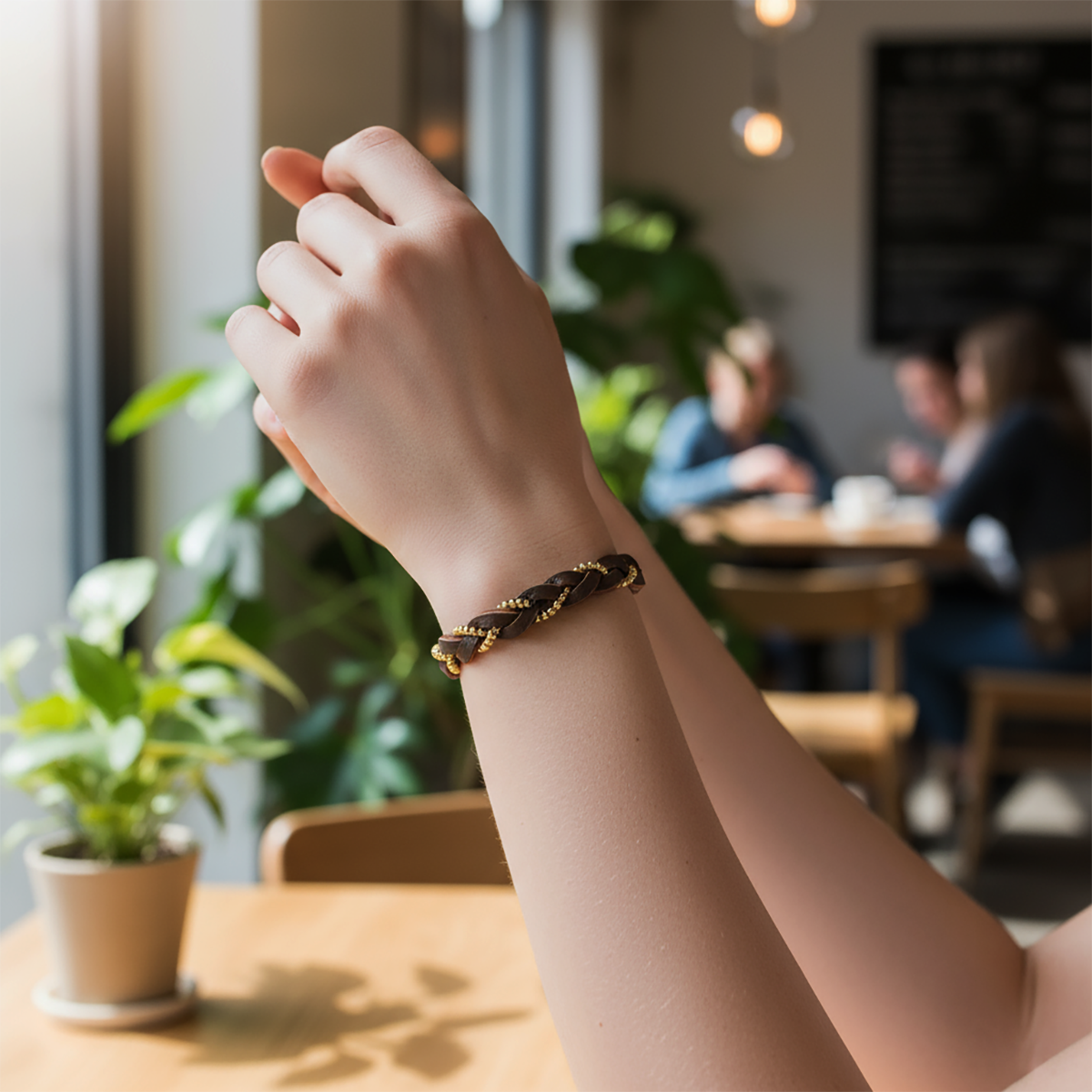 Add Chocolate Italian Leather Braid & Gold Bracelet to the cart