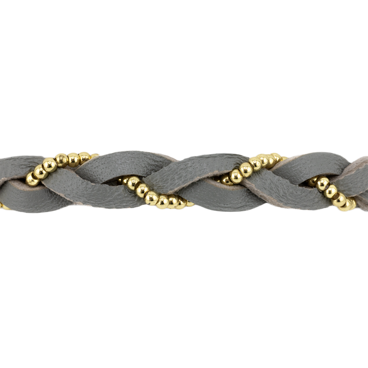 Add Gray Italian Leather Braid & Gold Bracelet to the cart