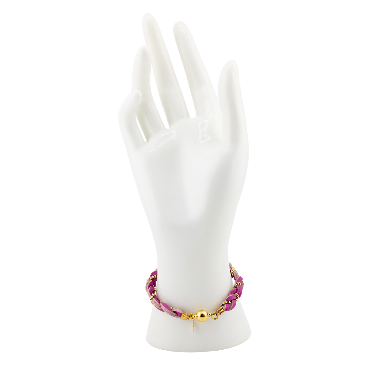 This pink leather and gold bracelet blends luxurious materials with a clean, minimalist design—making it the ideal accessory for women who appreciate modern elegance. It layers beautifully with bangles, charm bracelets, gemstone pieces, or your favorite watch.