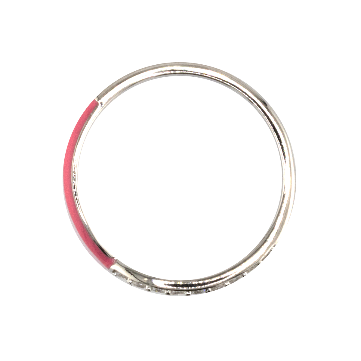 With its clean lines and vivid color-blocked enamel, this ring delivers a fresh, contemporary aesthetic. Whether worn solo as a statement piece or stacked with your favorite silver bands, it adds a bright, expressive touch to any outfit.