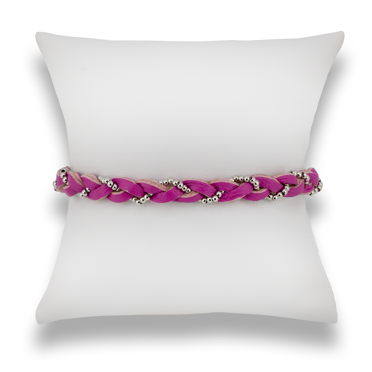 Pink Italian Leather Braid & .925 Sterling Silver Bracelet