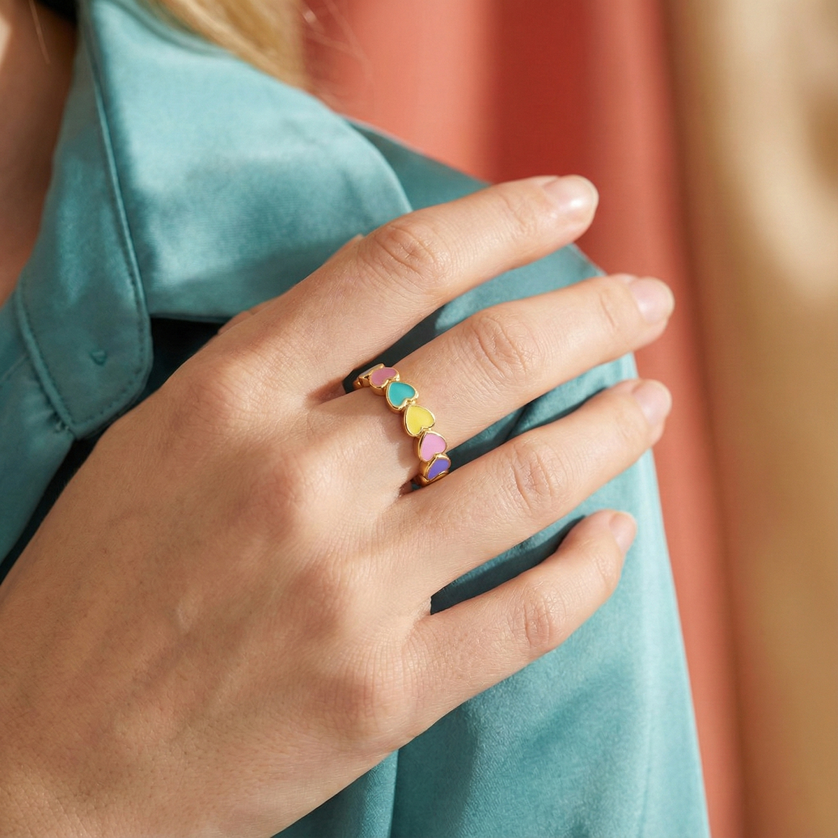 Happy Hearts .925 Sterling Silver & Enamel Ring