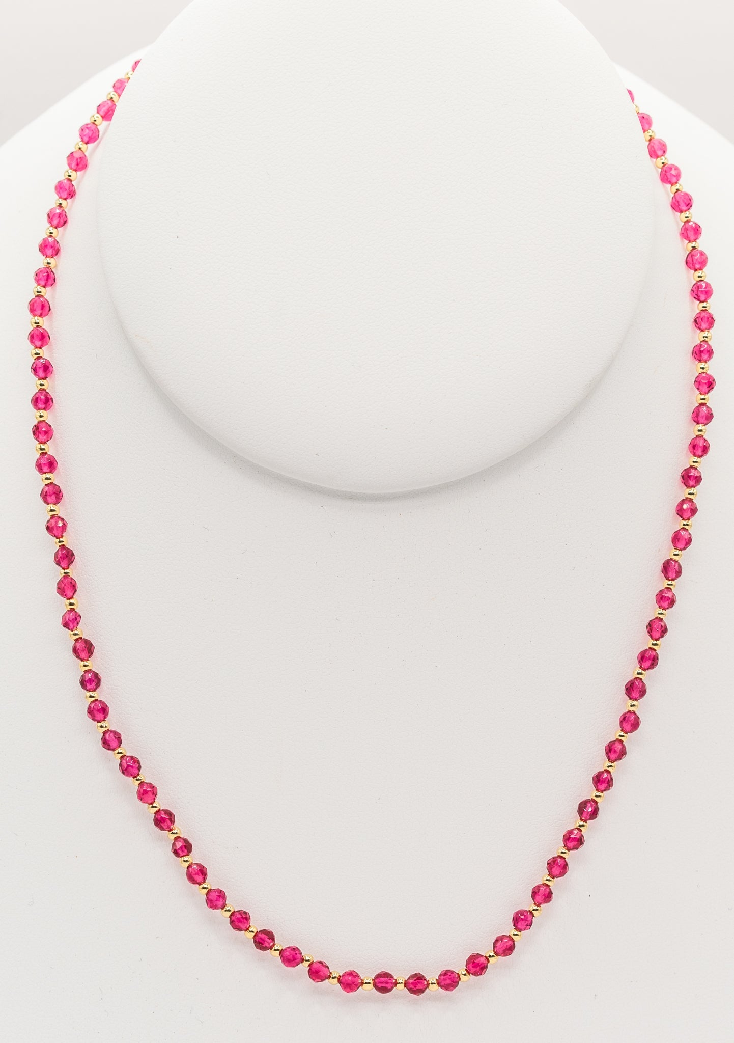Hot Pink Natural Crystal and Gold-filled Stretch Necklace