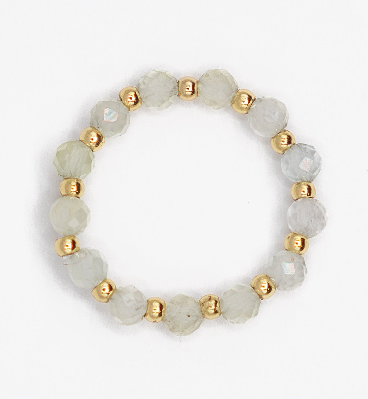 3mm gemstone, 2mm 18k gold-filled bead on high performance elastic