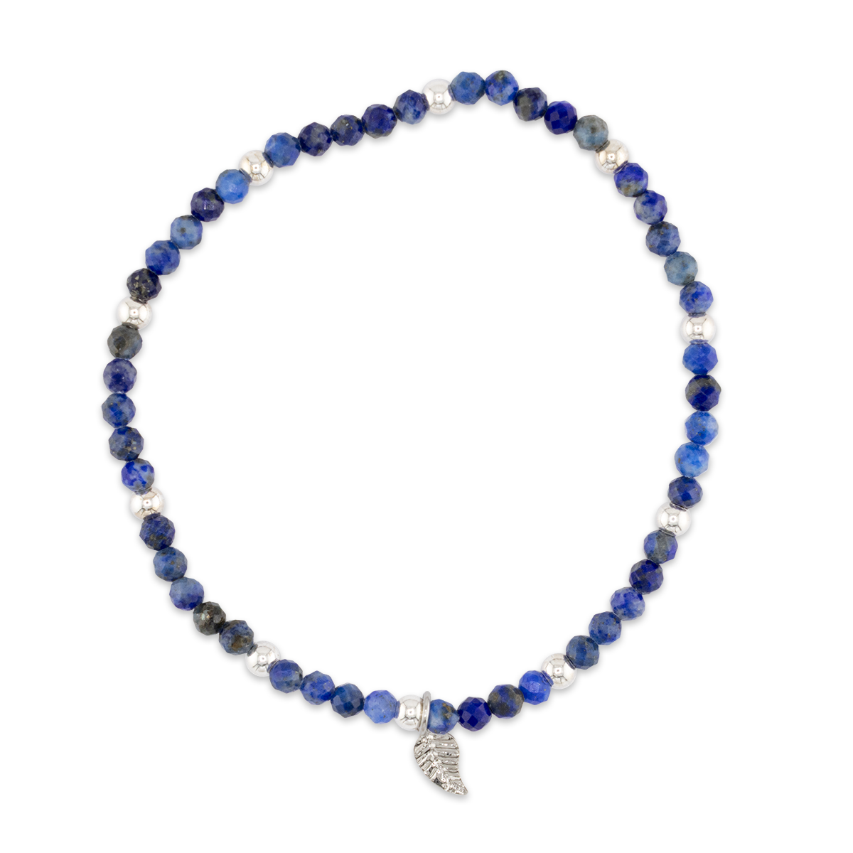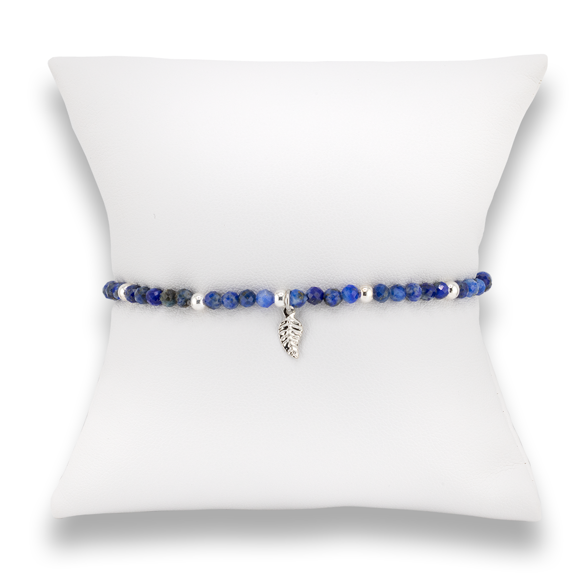 Lapis Lazuli Gemstone and .925 Sterling Silver on high performance elastic.