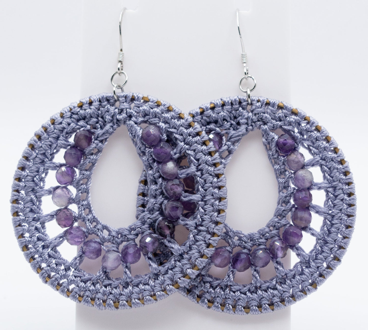 Handmade hoops with faceted amethyst gemstone, 2"; sterling silver and 18k gold plated wire