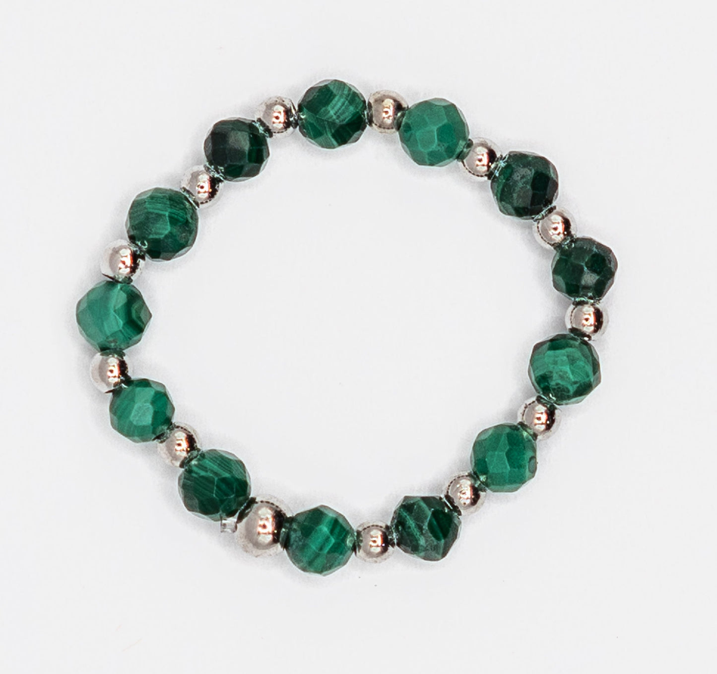 3mm gemstone, 2mm 18k gold-filled bead on high performance elastic