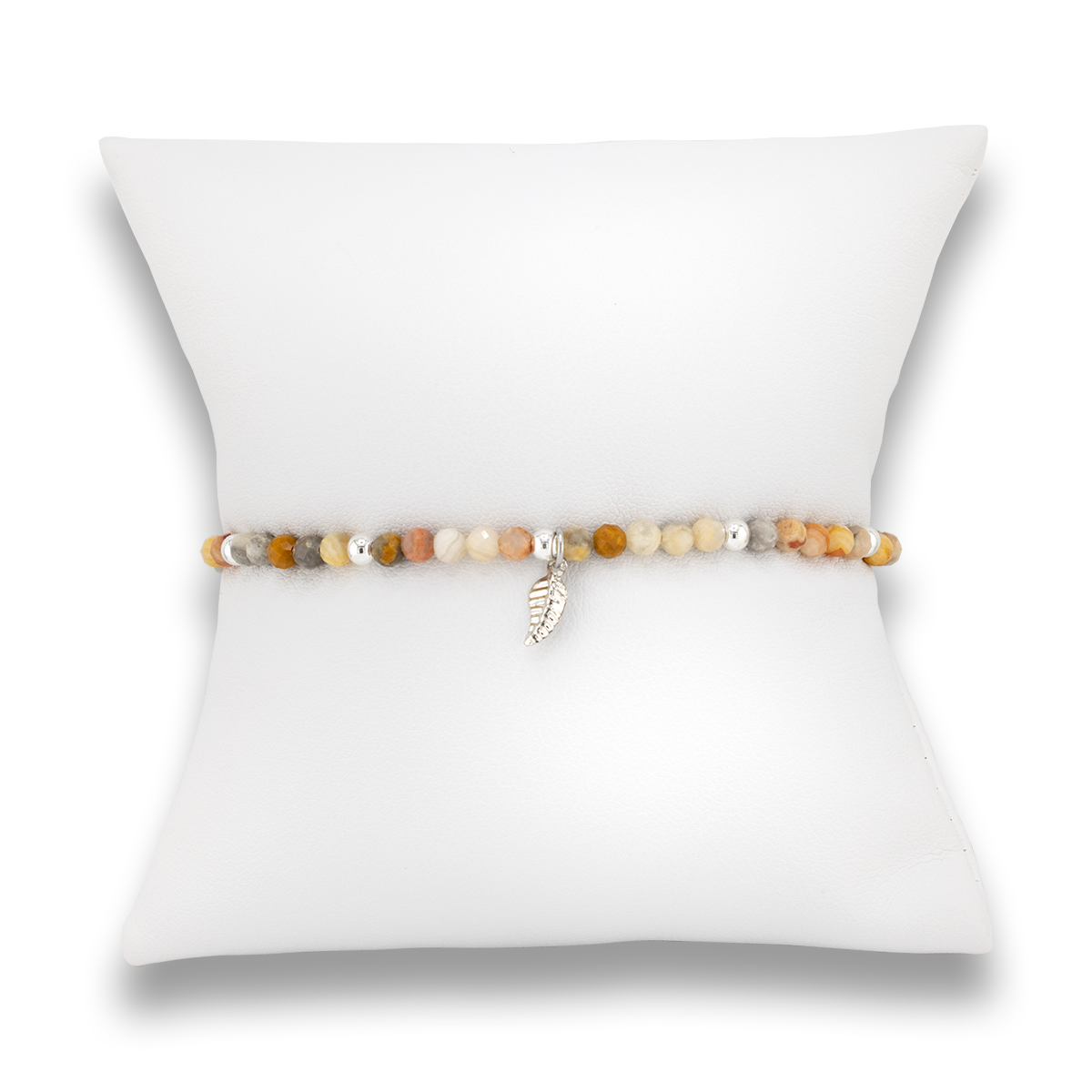 Petoskey gemstone and .925 Sterling Silver on high performance elastic.
