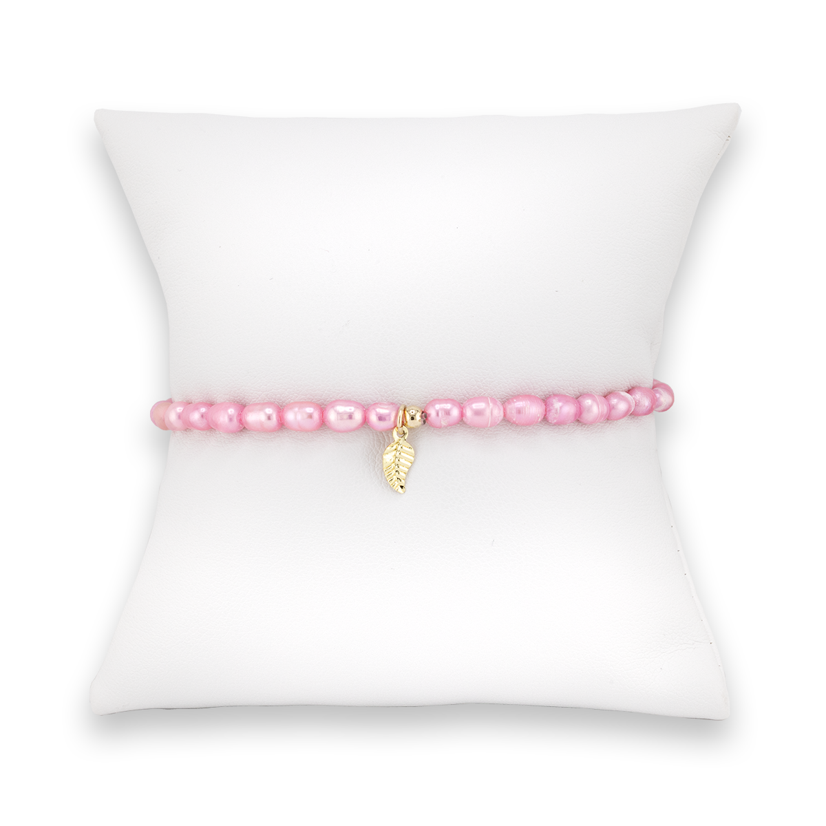 Pink Freshwater Pearl Gemstone Bracelet with 14K Gold Accent
