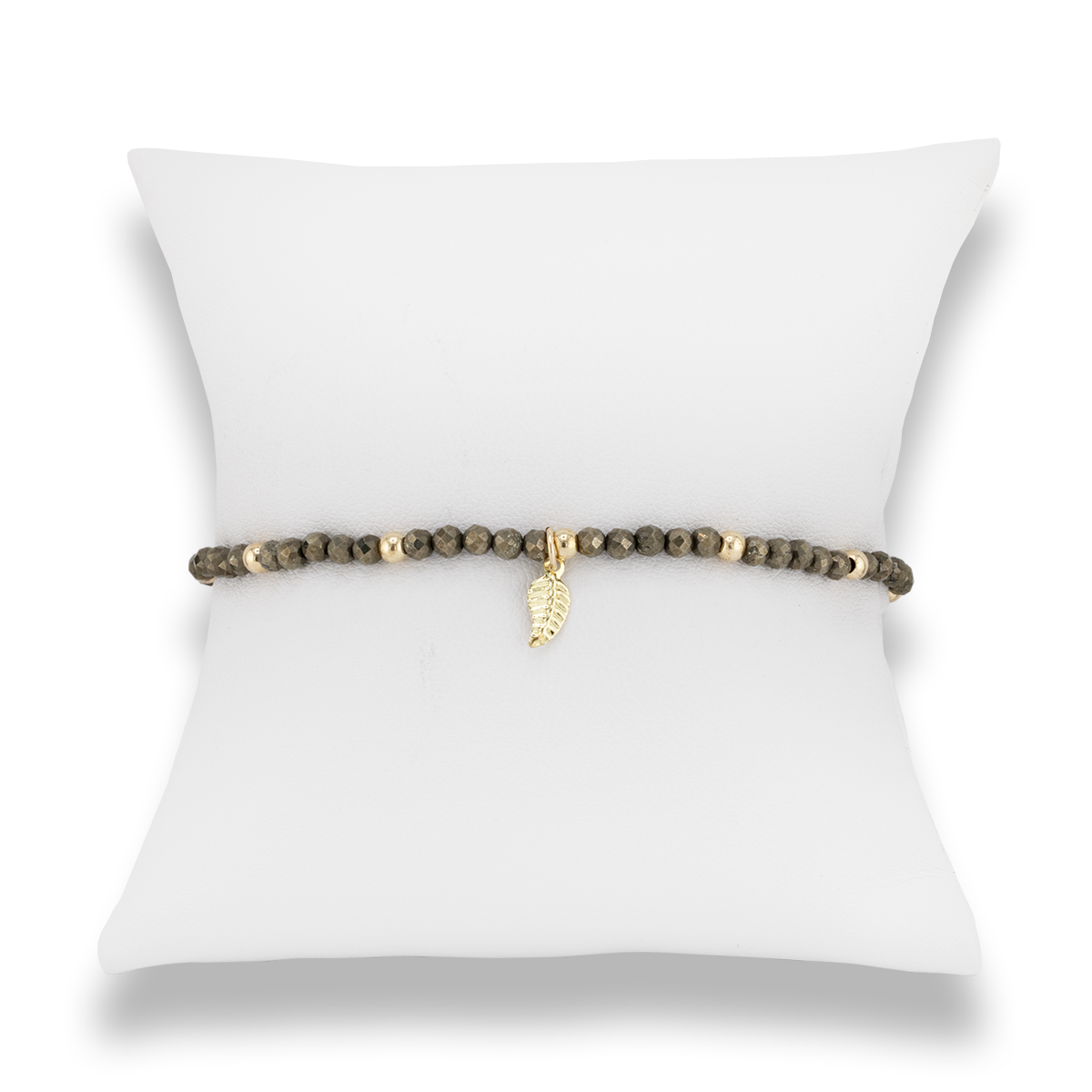 Pyrite Gemstone and 14K Gold on high performance elastic.