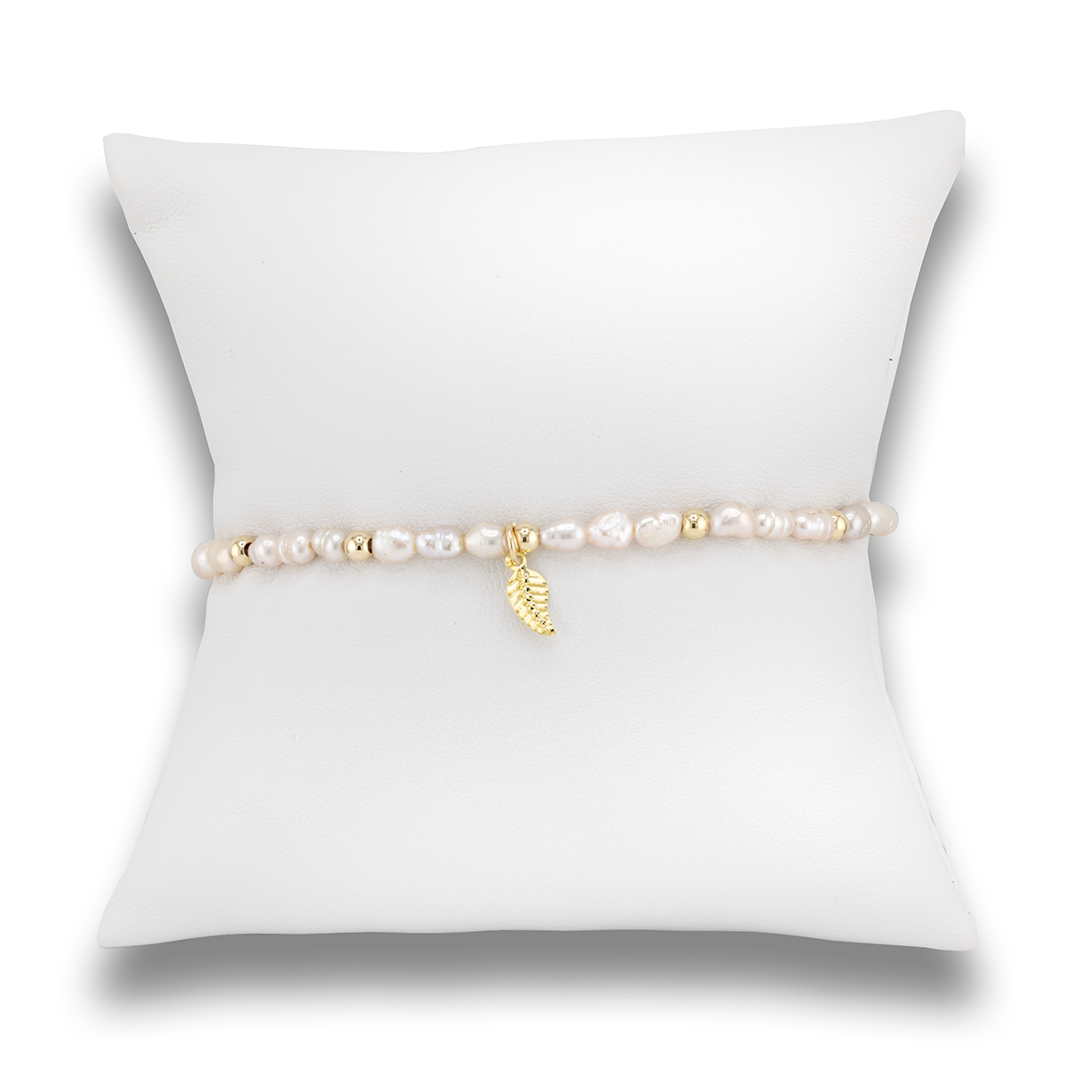 White Freshwater Pearls and 14K Gold on high performance elastic.