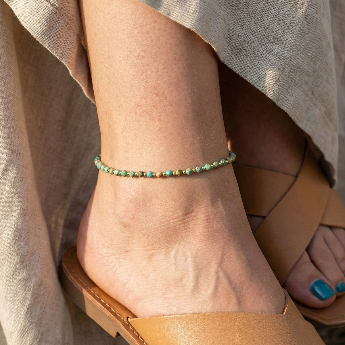 African Turquoise Gemstone and 18k Gold-filled Anklet