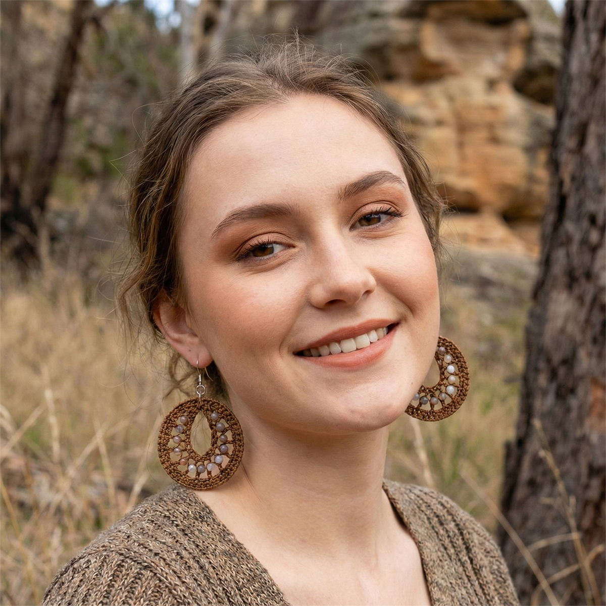 Perfect for nature-inspired outfits, fall palettes, or elevated boho looks, these hoops add depth, softness, and handcrafted charm to any wardrobe.