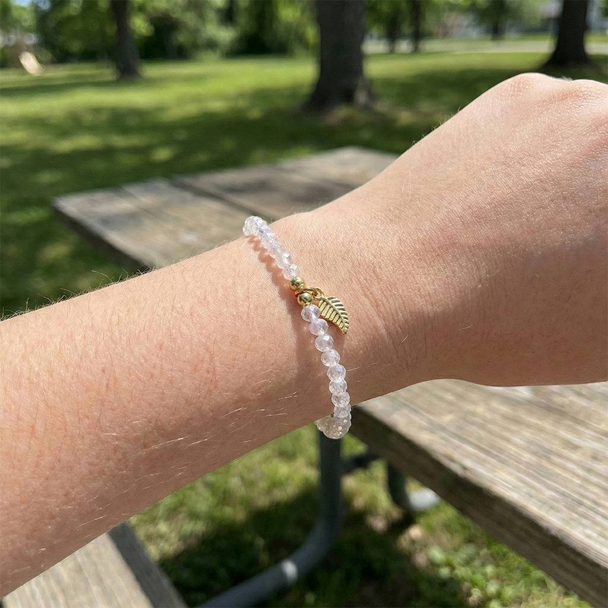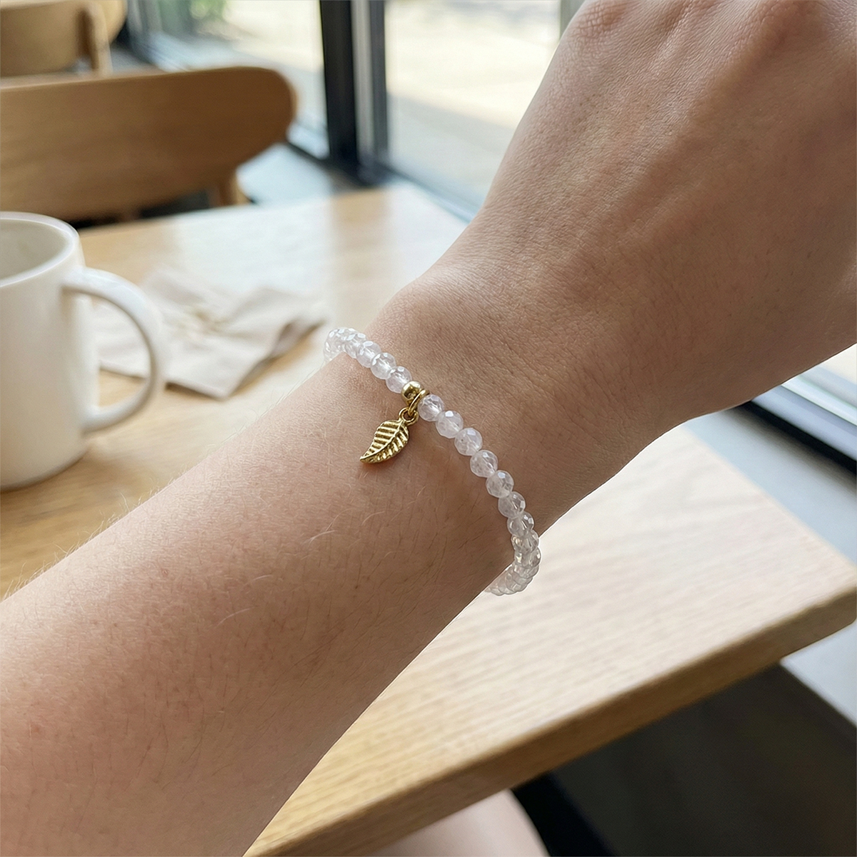 Add a touch of brightness to your daily attire with this clear crystal bracelet. The transparent stones reflect light to create a subtle shimmer that works well with both casual and formal clothing. Each bead is polished to a high shine and strung on a strong elastic cord which ensures the bracelet is easy to put on and take off. This piece serves as a versatile staple in any jewelry collection because its neutral tone matches every color palette. Wear it solo for a minimalist look or stack it with colorful bands for a bolder statement. This accessory highlights the inherent beauty found in natural materials.