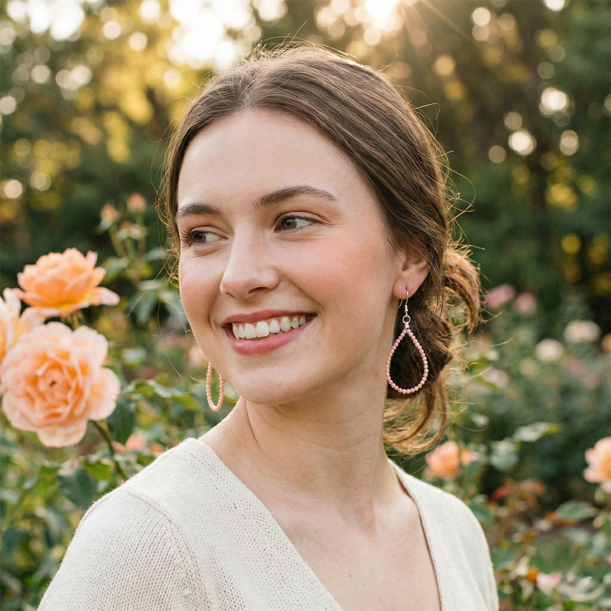 The smooth coral beads add a gentle pop of pink that complements both neutral and colorful wardrobes, while the clean hoop silhouette keeps the look polished and contemporary. Perfect for casual outfits, boho layers, and summer-inspired styles, these gemstone hoops offer a refreshing balance of softness and sophistication.
