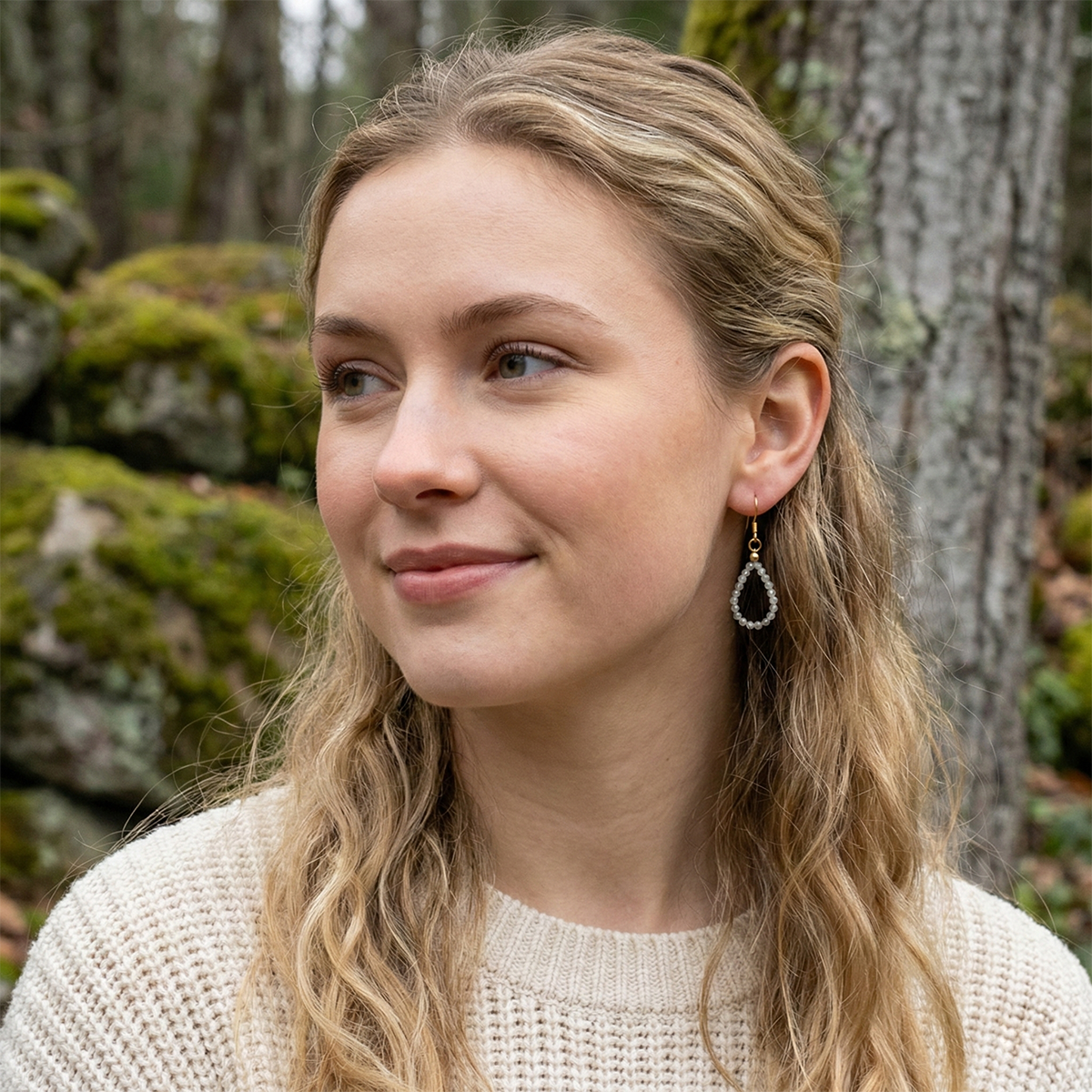 Lightweight, handcrafted, and full of natural shimmer, these tiny gemstone hoops add an elegant, ethereal touch to any look—from casual daytime wear to dreamy evening styling.