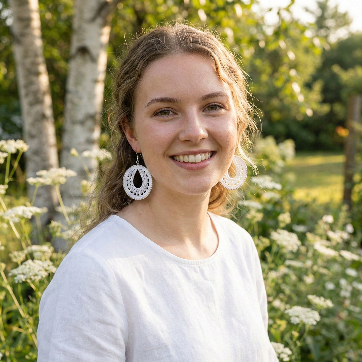 The lightweight hoop silhouette adds a modern touch while ensuring comfortable, all-day wear. The bright white macrame offers a clean, minimalist foundation, while the natural crystal gemstones introduce subtle brilliance and energetic clarity. Perfect for both casual and elevated looks, these hoops are a go-to accessory for anyone who loves a blend of boho artistry and timeless sparkle.